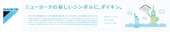 2001年のビル倒壊からちょうど10年目に完成する建物の名前は、自由の塔=フリーダムタワー。アメリカ独立宣言の年と同じ1776フィート(541メートル、108階立て)の高さになるこの超高層ビルの空調に、ダイキンが選ばれました※。 システムの特徴は、アメリカで主流のビル全体を同じ設定で空調する方式ではなく、エリアごとにきめ細かくコントロールできること。そのことによる高い省エネ性が評価されたのです。近年の環境問題、エネルギー問題の中で変わり始めたアメリカの意識。その流れが生んだ、今回のニュース。ダイキンはこれからも、世界が求める「快適と環境を両立させる空調技術」を届けていきます。