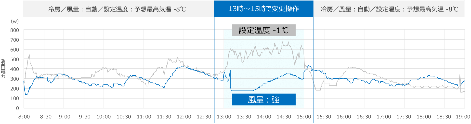 2023年8月21日 | 設定温度:26℃→25℃(13:00~15:00) |