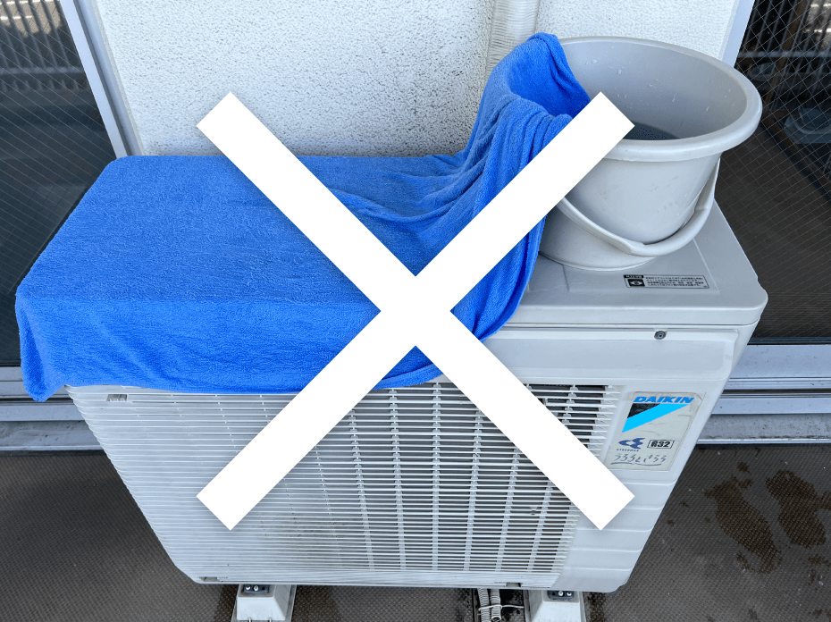 | 検証4 | 室外機に濡れタオル |