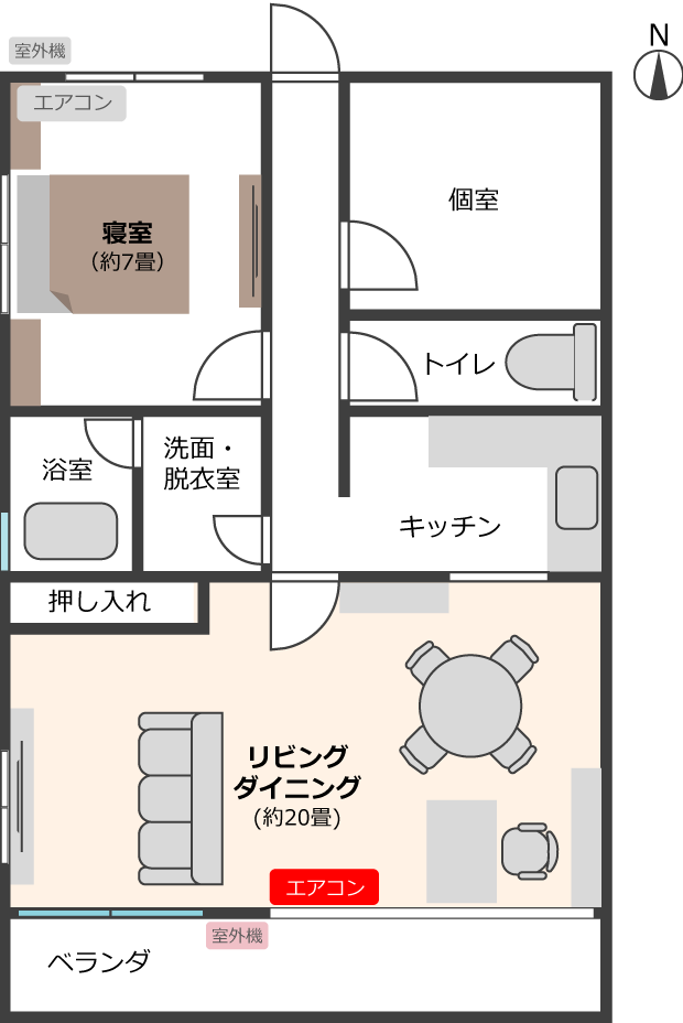 エアコンの風向設定