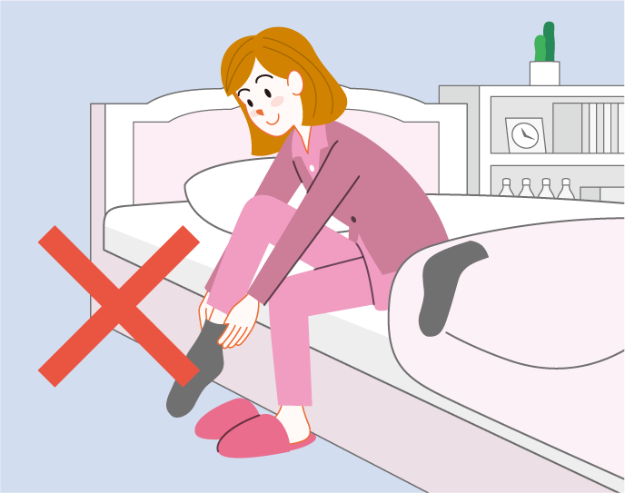 また、寒いからといって厚着したり、靴下を履いたりして寝ることもおすすめできません。質の高い睡眠を得るには、寝具の中で身体の表面が温まった上で、身体から熱が適度に放散される状態にする必要があります。厚着や靴下はこの熱の放散の妨げとなるため避けた方がよいでしょう。