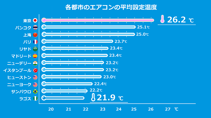 世界の各都市で、エアコンの平均設定温度に違いはあるのでしょうか・・・ 全体をみる