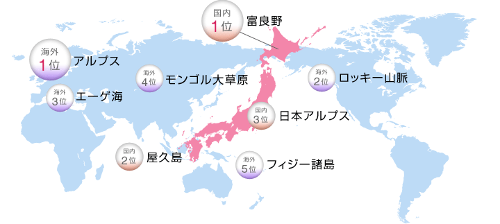 空気の三大理想郷は、国内では「富良野」「屋久島」「日本アルプス」。