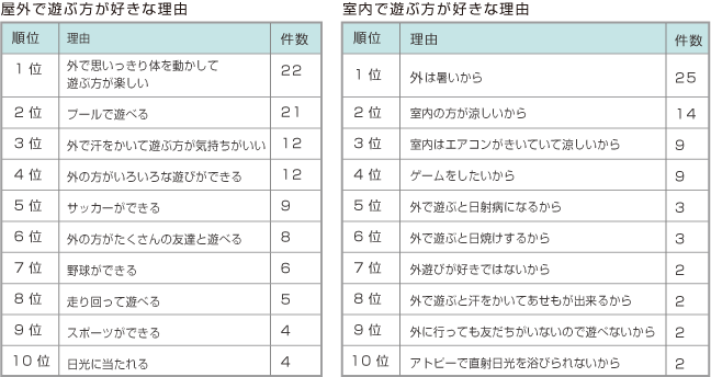 夏、屋外で遊ぶのと室内で遊ぶのではどちらが好きか住まいの空気