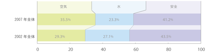 その結果、2002年では、「安全」(43.5%)が最も多く、次いで「空気」(29.3%)、「水」(27.1%)の順・・・