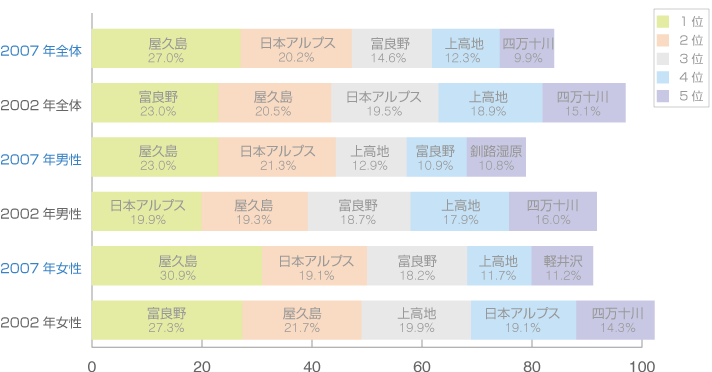 その結果、トップ3が「屋久島」、「日本アルプス」、「富良野」であることは変わっていませんが、・・・