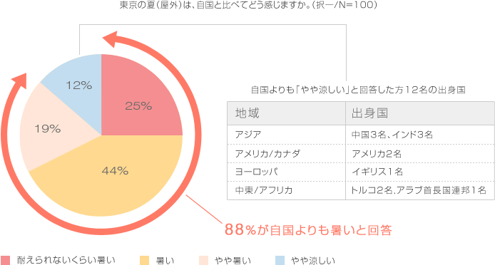 トップ > 空気で答えを出す会社 > 空気とくらし > 現代人の空気感調査 > 第20回 外国人に聞いた「東京の夏の暑さ」に関する意識調査