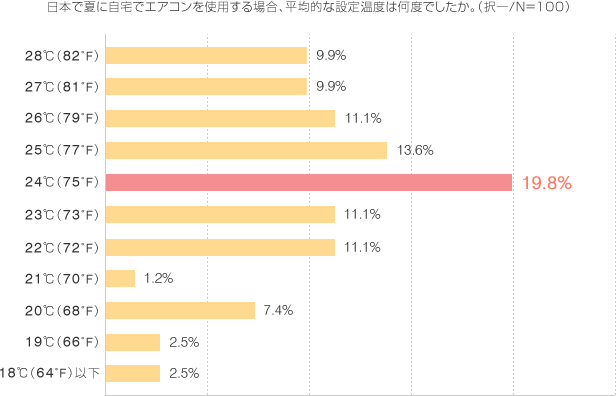 また設定温度については、「外国人は24℃設定にしている方が最も多い」という結果でした。