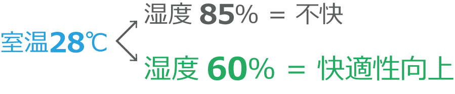 湿度をコントロールできれば、設定温度が高めでも快適な冷房ができて、設定温度が低めでも快適な暖房ができます。