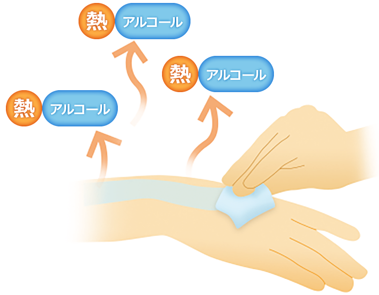 たとえば、アルコール消毒のときに腕が冷たく感じられます。これは、腕からアルコール液が蒸発するときに、腕の熱を奪っていくからです。