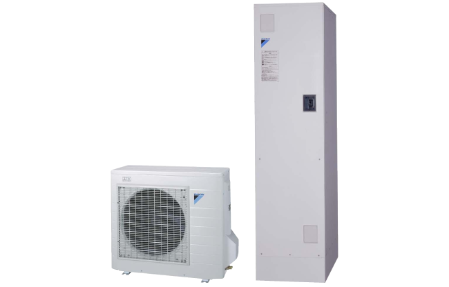 ダイキンは長年蓄積してきたヒートポンプ技術を活かし、より少ない電力でお風呂やキッチンの給湯をまかなう「ダイキンエコキュート(ヒートポンプ式給湯機)」の製品化に成功しました。