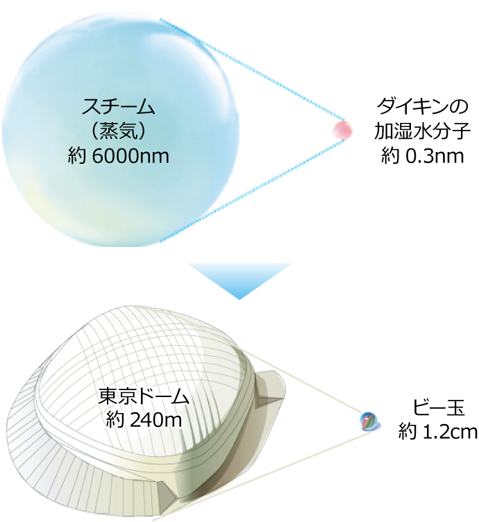 さらに、スチームの2万分の1(0.3nm)という超極小の水分子で加湿するので、お肌や髪の隙間まで潤います。