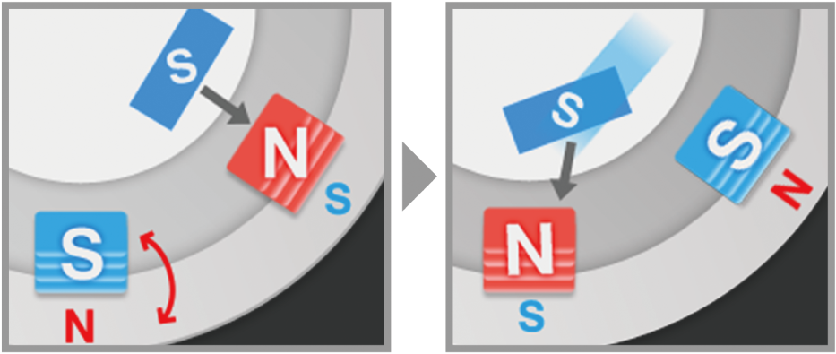 さらに、電流の流す方向を変えるとN極とS極が切り替わります。