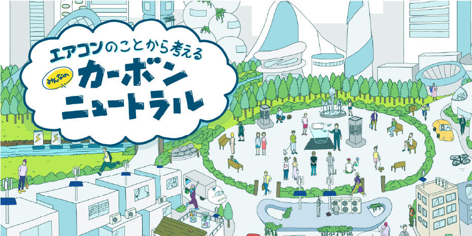 エアコンの環境影響や、カーボンニュートラルの取り組みを紹介します。