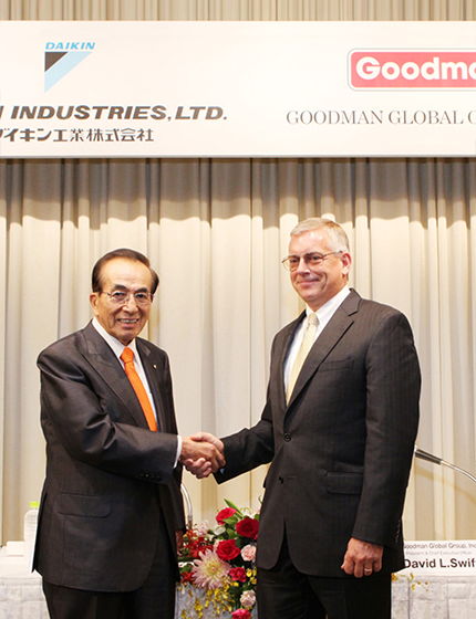 ダイキンエアコンディショニングアメリカズ社の設立(2005年)、OYL社の買収(2006年)によって北米空調市場での存在感を高めたダイキンは、さらに事業領域を広げるためGoodman社を買収。北米で主流のダクト式の住宅用ユニタリー市場に本格的に参入しました。ダクトとダクトレス事業の融合による他社との差別化、販売網を活用したダクトレス空調の拡販などのシナジー効果が生まれ、ダイキンのグローバル戦略において大きな意味を持つ買収になりました。