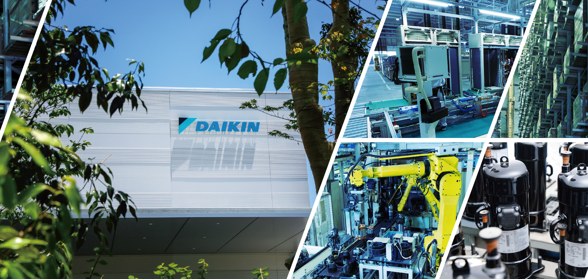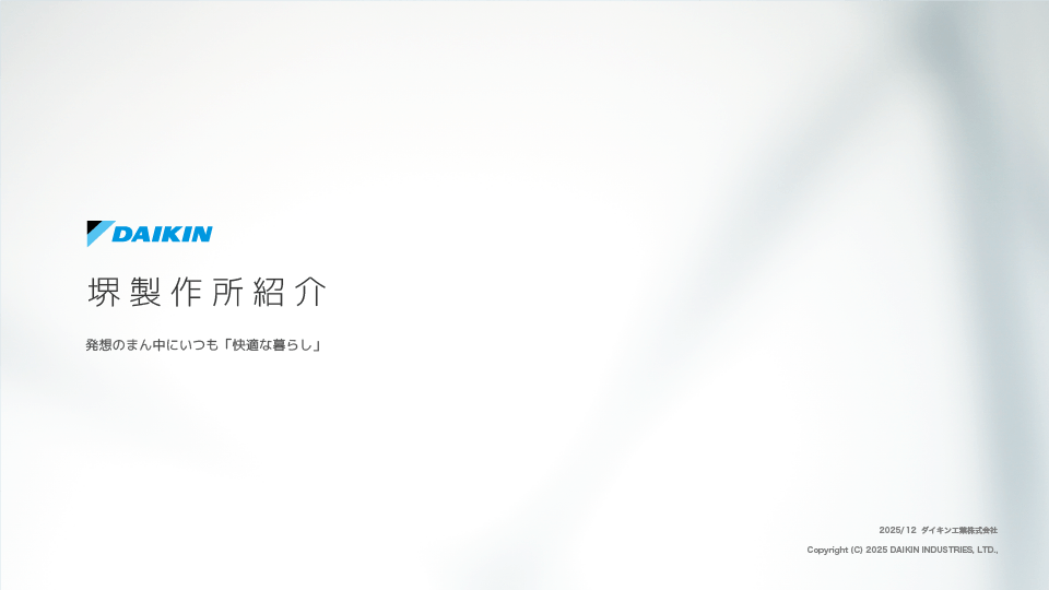 最先端の空調テクノロジーを通して暮らしに“ここちよさ”をお届けしている企業、ダイキン。そんなダイキンの技術と品質の中心を担うのが「臨海工場」「金岡工場」の2 つの工場を有する堺製作所です。「臨海工場」は業務用エアコン室外機の生産拠点として最先端のものづくりと省エネで快適な作業環境を実現し、「金岡工場」は設計・生産を一貫した体制で両立し、空調技術を更に高め、グローバルに発信していく役割を担っています。