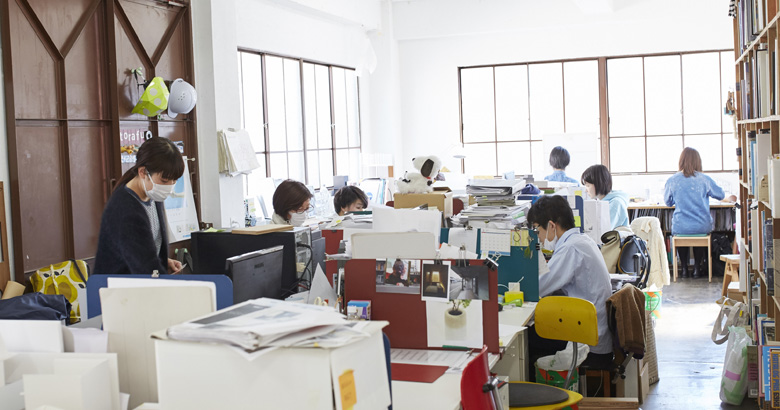 静かな住宅街の真ん中に、"クリエイターたちの隠れ家"と呼ぶには存在感がありすぎる不思議な建物が。この元は工場だった物件をリノベーションした1フロアに、トラフ建築設計事務所のオフィスがあります。白くて四角い箱のような空間に、大きな窓から気持ちよいくらい光が注ぎ込んでいます。