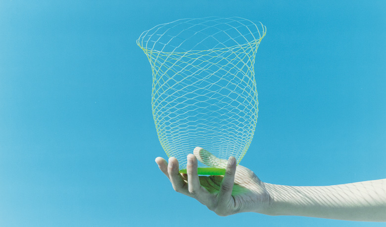 敷地から考えていくことで、広場の勾配を目に見えるかたちに変えて、心地よい空気をつくりだした『ガリバーテーブル』。そうした見えないものを可視化するアイデアは、トラフ建築設計事務所の代表作とも言える『空気の器』にも活かされています。空気を包み込むようにして、かたちを自由に変えられる紙の器です。