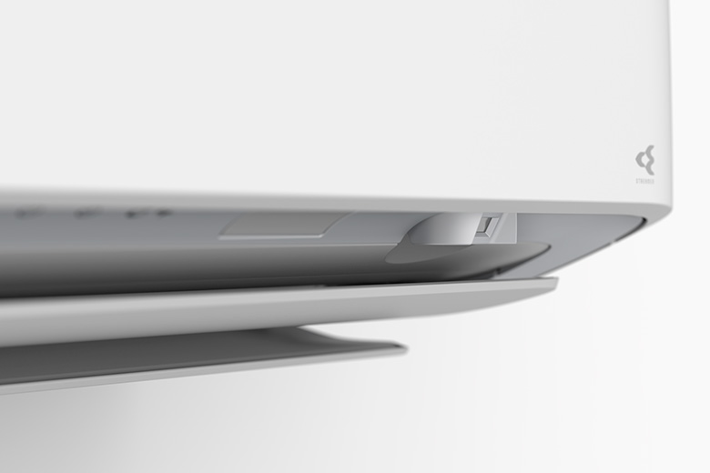 また空間全体を快適な空気で満たすため、フラップのポジションは、冷房時や暖房時など運転状態によって大きく異なります。「うるさらシリーズ」では、天井に沿った気流で空間を冷やすサーキュレーション気流や、床に沿って足元から空間を温める垂直気流など、空気の専門家であるダイキンならではの高度な気流制御が搭載されています。フラップのポジションを元に筐体底面のラインを丁寧に調整することで、いずれの運転状態にあってもインテリアとの調和性を高めました。