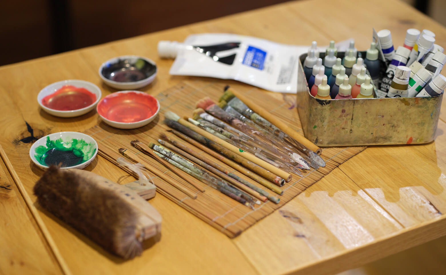 今後は、能楽堂の「老松」や、歌舞伎の舞台やお寺の講堂といった、伝統的な場所で描くことにも挑戦してみたいです。ああいう空間では、グラフィカルに寄りすぎて描いてしまうと軽く映ってしまう可能性があるし、かと言って伝統的な描き方そのままではなく、新しいものも見てみたい。無理やり変えたわけでもなく、それでいて今まで通りでもない世界が見られれば、きっとそこには心地いい空間が広がっているのではないかと思います。