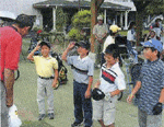 (右画像)エチケットやマナーをしっかり学ぶ、沖縄のジュニア選手たち。