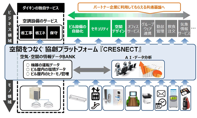 ダイキン工業株式会社は、空調機から得られるデータを活用し、様々なパートナー企業と協業して空気・空間にまつわる新たな価値やサービスを生み出していくための、協創型プラットフォーム『CRESNECT(クレスネクト)』を開設します。
