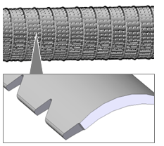 従来の約2倍にしたファンの連結数と、翼の切込みが、風切り音を分散・低減。
