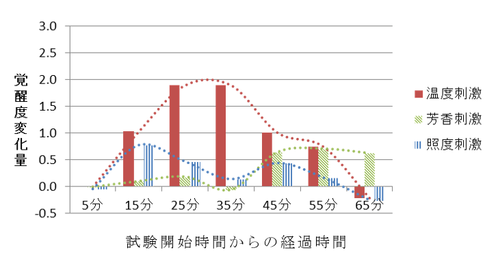 図3:各刺激による覚醒度の変化量(環境変化を与えない場合との比較)