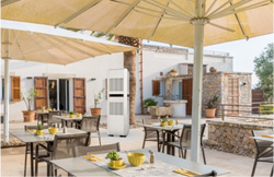 タワー形で、周囲の景観と調和するデザインを採用しており、従来のスポットエアコンの外観ではそぐわなかったような、カフェやレストランのテラス席や、公共施設や商業施設の屋外休憩スペースなど、人が集まる様々な空間に置くことができます。