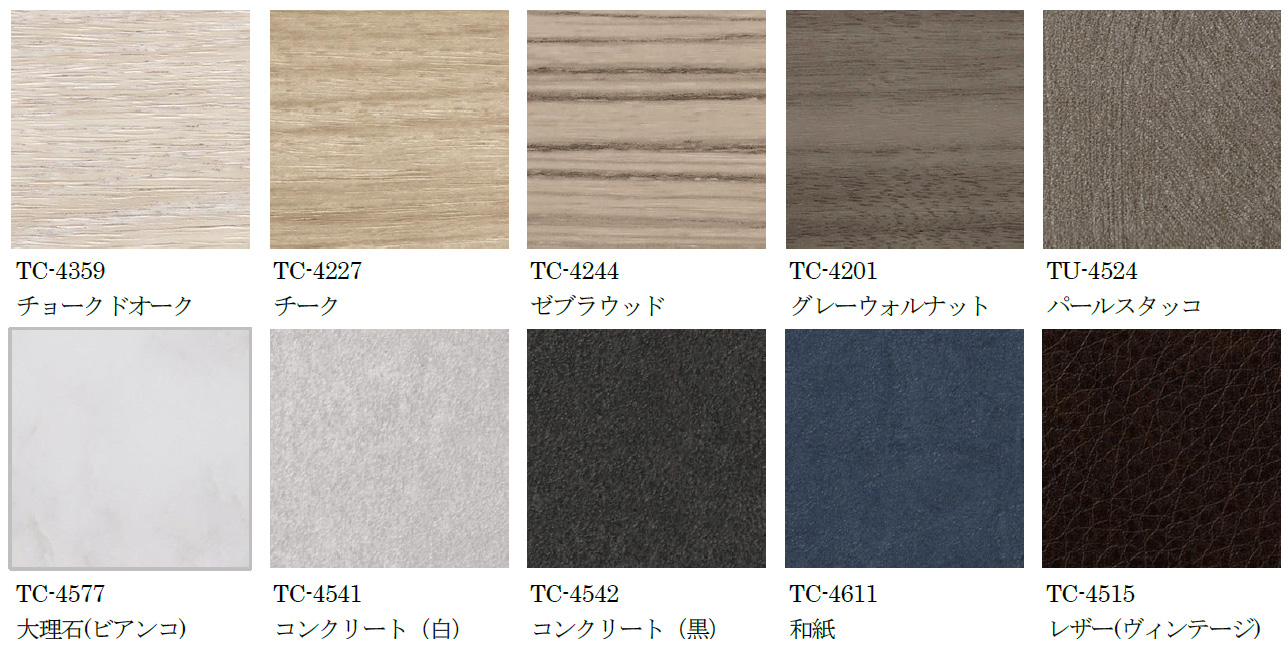 ~正面パネルを木目、大理石、レザーなど個性豊かな質感から選べる~