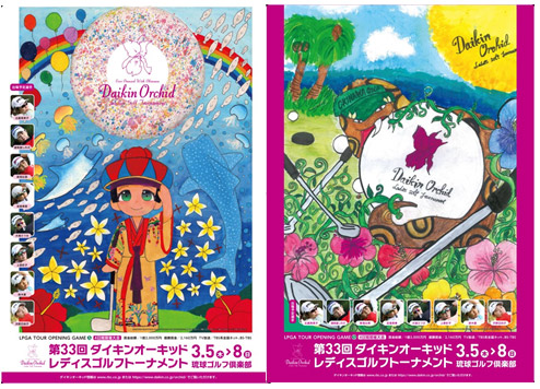 2002年の第15回大会より実施したポスターデザインの公募は、沖縄の若い世代の芸術・文化振興に貢献する目的から。2014年より沖縄県に在住、または本籍地が沖縄県の園児、小学生、中学生、高校生を対象に大会ポスターデザインを公募しています。作品は沖縄をイメージさせるものや、ゴルフを連想させるものなど子どもの斬新かつ大胆は発想で描くデザインが大会の雰囲気を盛り上げると同時に子どもたちにもダイキンオーキッドレディスはもとより、ゴルフを知ってもらうきっかけとなっています。現在も大会ポスターを一般公募しているトーナメントはなく、ダイキンオーキッド独自の取り組みです。