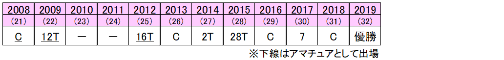 17年連続20回目の出場 ベストフィニッシュ 2位タイ