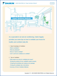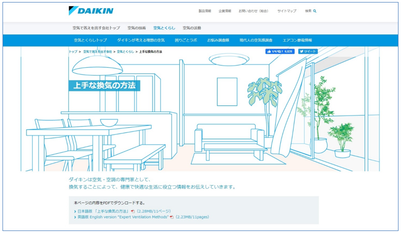 そこで当社は、より多くの人に正しい換気の情報を知ってもらいたいという思いから、当社WEBサイトのコンテンツ「上手な換気の方法」の英語版 “Expert Ventilation Methods” を制作し、4月30日に公開しました。「上手な換気の方法」のページから、日本語版・英語版のそれぞれのPDFファイルをダウンロードすることが可能です。(URL:https://www.daikin.co.jp/air/life/ventilation/)
