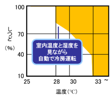 人の在室時、室内の温度と湿度が熱中症の警戒が必要な値※2に上昇すると、エアコンを自動で冷房運転※3します。