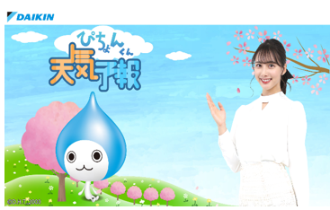 天気予報部分では、当社キャラクターの「ぴちょんくん」とキャスターが、翌日の天気予報や花粉の飛散、桜の見頃など季節ごとの情報をお伝えします。また、温度や湿度等のバランスから集中力や美容などにまつわる、ダイキンならではの「空気予報」もお届けします。