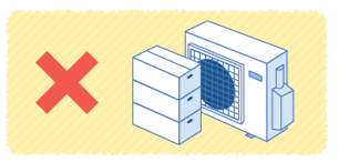 屋外にあるエアコン室外機の吹き出し口がふさがれると、お部屋の中の空気から奪った熱を効率的に放出することができません。これではエアコンの冷却効率が著しく低下しムダな電気代がかかってしまいます。冷房使用時は室外機にカバーをかけず、また吹き出し口付近やその周辺に障害になるものを置かないようにしましょう。