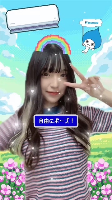 今回、当社が提供する「#ダイキンのエアコンを救え」エフェクトは、“夏のフル稼働で疲弊しきったエアコンを助ける”というミッションのもと、エアコンが冷房・除湿運転で取り除く「湿度」をユーザーが代わりにやっつけるというものです。不快なジメジメの原因となる「湿度」を「しずく」で表現し、音楽に合わせて落ちてくる「しずく」をパンチしてやっつける音ゲー風のエフェクトです。最後は、湿度を倒してエアコンが元気になった様子を虹とともに広がる爽やかな景色のエフェクトで表現。エアコンといえばダイキンというイメージの醸成をめざしたストーリーに仕上げています。