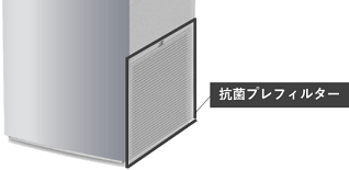 『UV加湿ストリーマ空気清浄機』『UVストリーマ空気清浄機』のメッシュ素材に抗菌剤を添着した「抗菌プレフィルター」を採用しました。空気中の大きなホコリ等を捕集するプレフィルターはお手入れ時に触れることが多い部品です。プレフィルターに付着した細菌を抑制することで、お手入れ時の安心感を確保します。