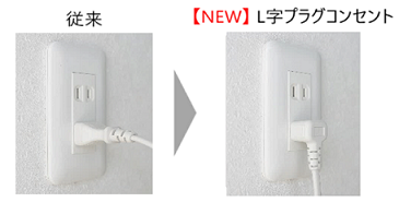 『うるるとさらら空気清浄機』『加湿ストリーマ空気清浄機(2機種)』『ストリーマ空気清浄機』には、電源コードの張り出しが少ない「L字プラグコンセント」を採用。狭い隙間でも出っ張りを気にすることなく使用でき、モノや足がぶつかってコードを痛める心配も少なく安心です。機器をコンセントプレートの前に設置する場合でも邪魔になりにくく、設置しやすくなりました。