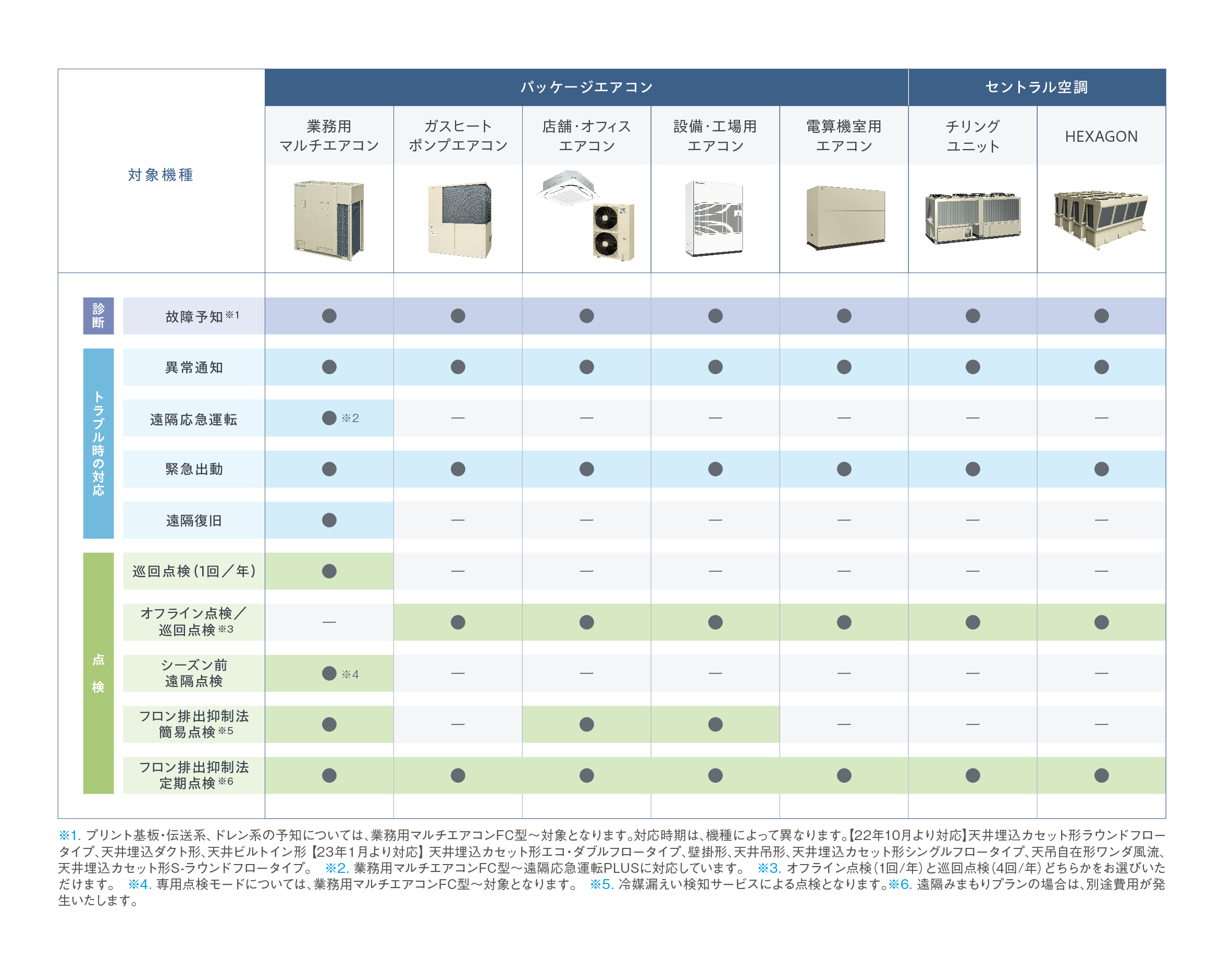 - 「遠隔応急運転PLUS+」「シーズン前遠隔点検」は、2022年10月発売のビル用マルチエアコン『VRV Xシリーズ』、『VRV Aシリーズ』が対象