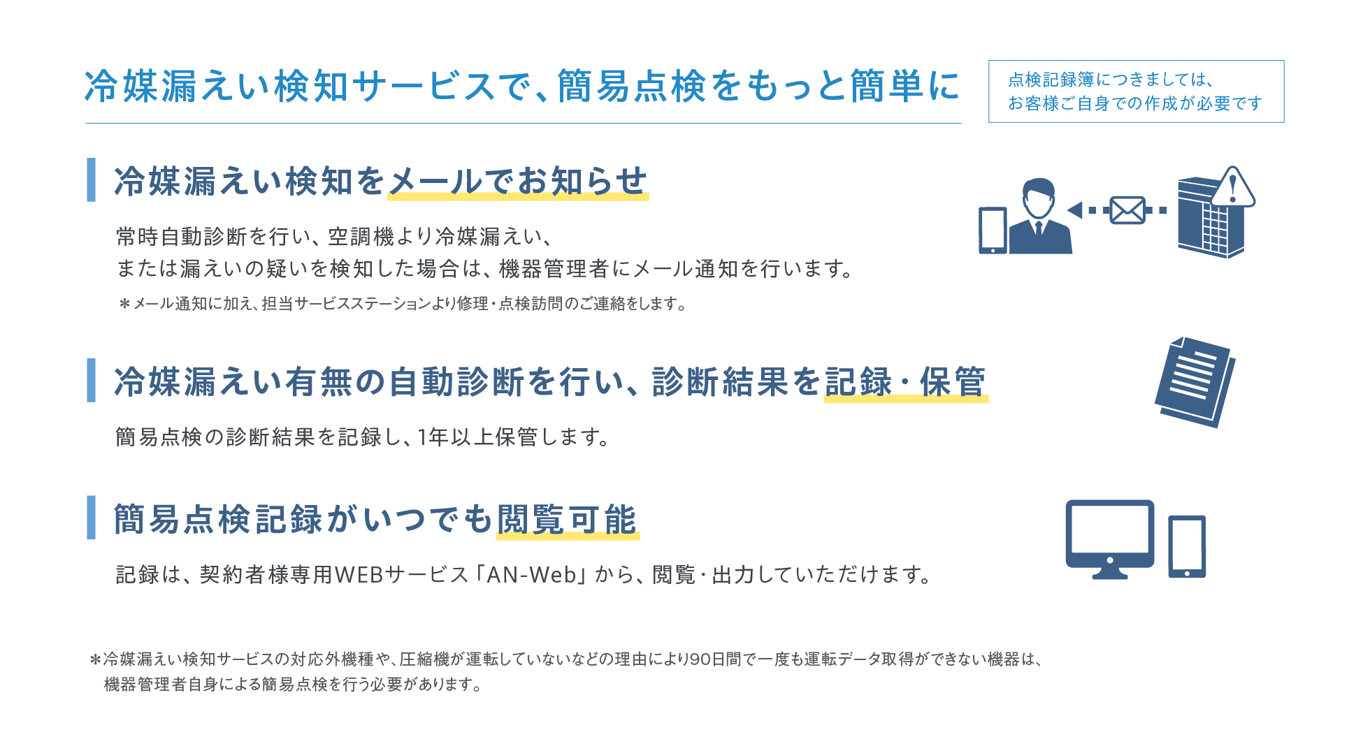 - フロン排出抑制法に基づく定期点検と簡易点検に対応