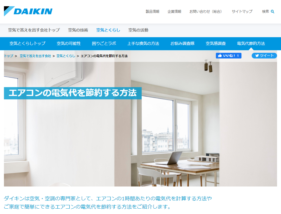 WEBコンテンツ「エアコンの電気代を節約する方法」:https://www.daikin.co.jp/air/life/electricbill