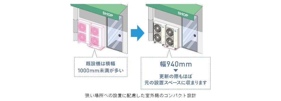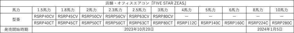 今回モデルチェンジする『FIVE STAR ZEAS』シリーズは、運転条件や負荷の変化に応じて電子膨張弁をさらに細やかに制御することで、1.5馬力から2.5馬力の小容量クラスの省エネ性を業界トップクラスに引き上げました。またこれまで6馬力までだったラインアップに、新たに8馬力と10馬力の大容量クラスを追加します。大容量クラスのラインアップにより、機器の省エネ性の高さによる電気代の削減だけでなく、設置台数の削減やそれに伴う施工費の削減に貢献します。