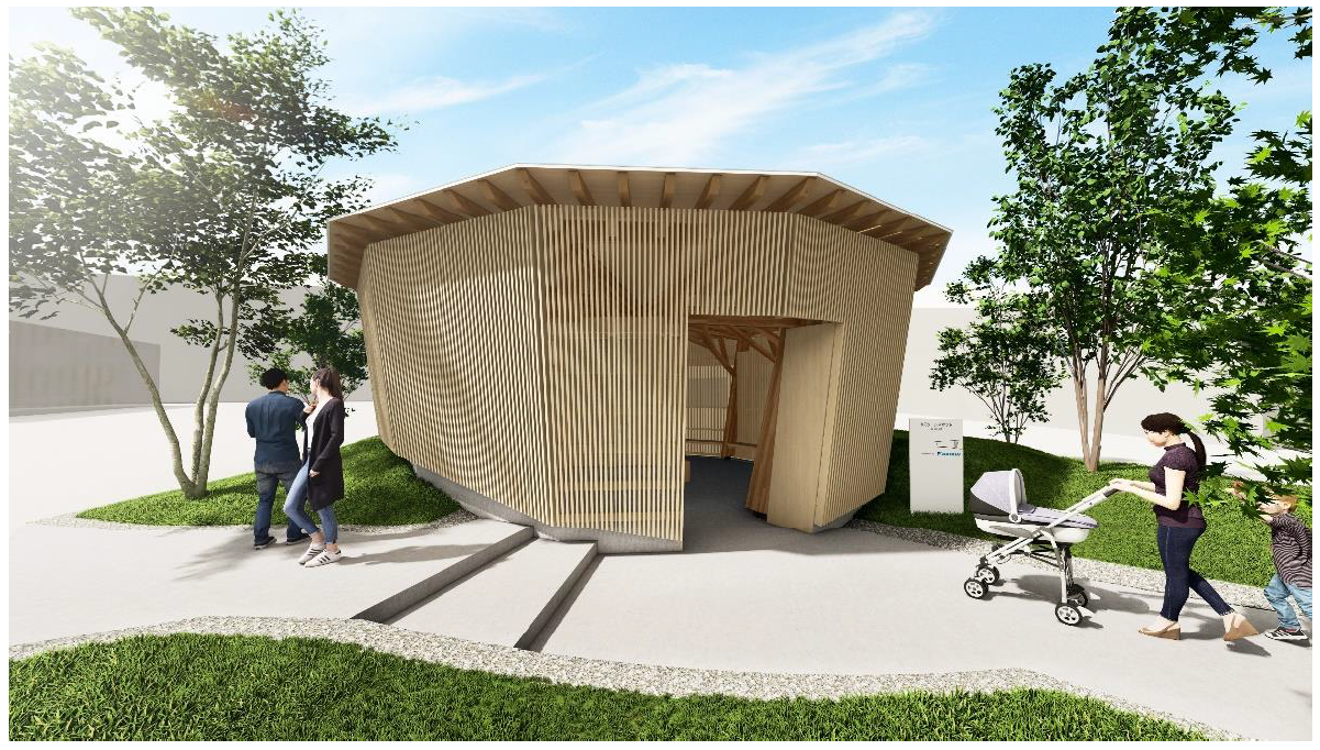 ダイキン工業株式会社は、2025年日本国際博覧会(大阪・関西万博)における真夏の暑さ対策として、自然エネルギー※1を利用する空調システムを搭載した休憩所「氷のクールスポット」を会場に設置します。