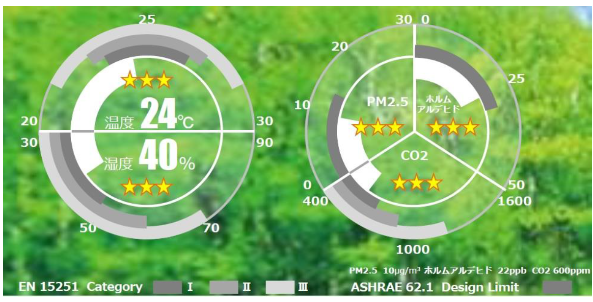 店舗入り口に設置する「IAQモニター」の表示画面イメージ