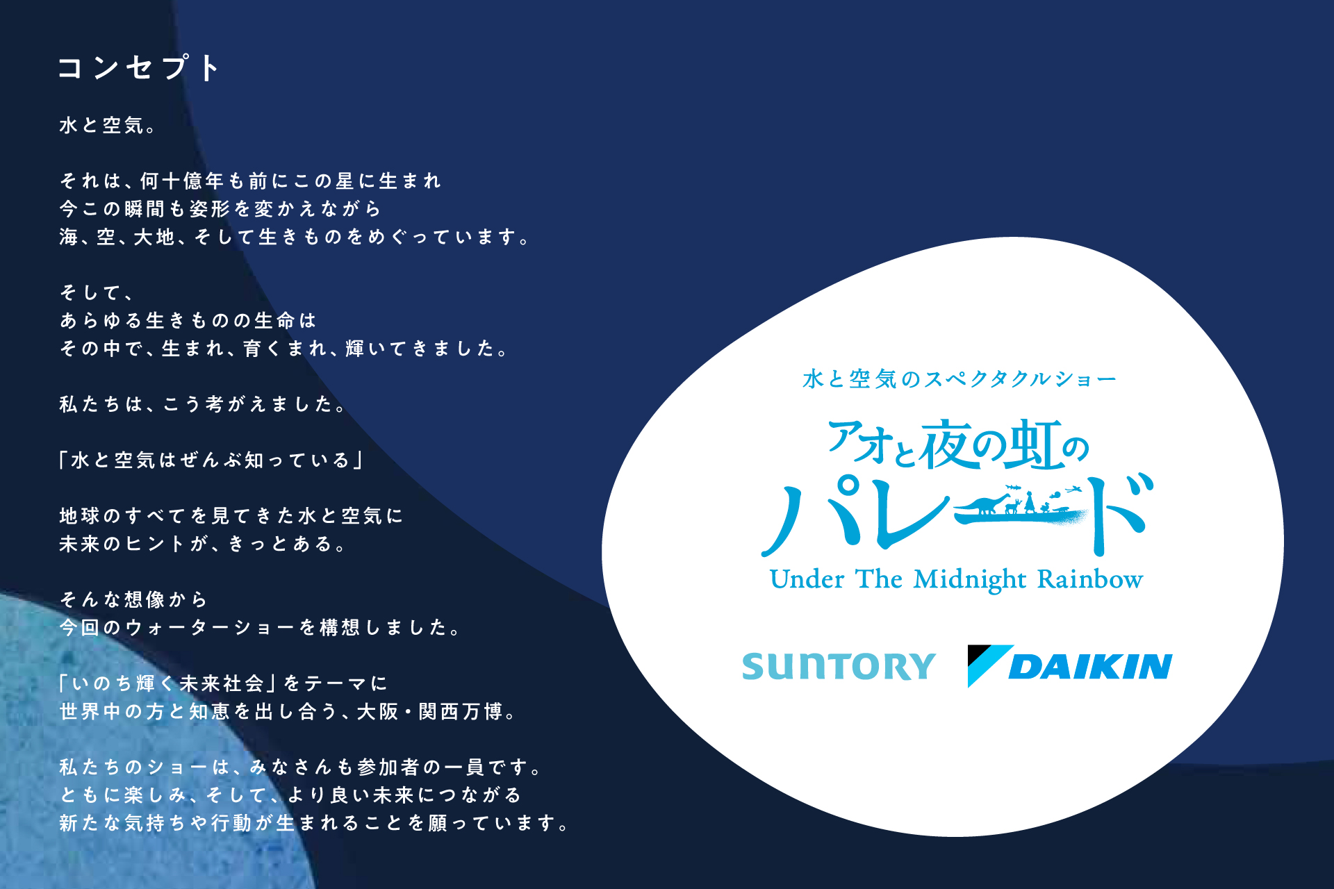 このショーは「水」と「空気」、そして「生命(いのち)」がつながり、めぐっていく祝祭の物語をコンセプトとしています。