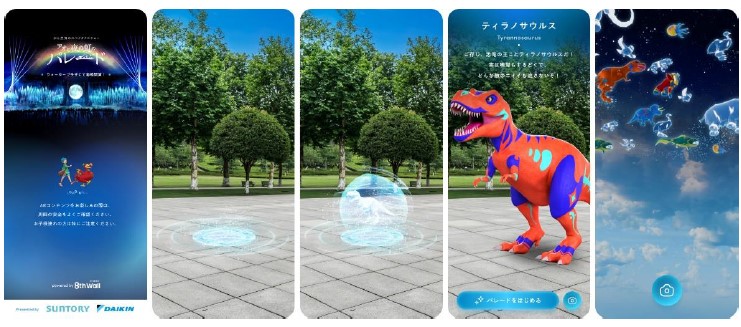 万博会場内でスマートフォンをかざすと、AR技術により空中をパレードする生きものたちが画面上に出現します。生きものたちは会場内のさまざまな場所から「ウォータープラザ」に向けてパレードし、人々を“祝祭”へと誘います。また、出現した生きものと一緒に写真を撮影し、万博の思い出として残して いただけます。会場内の随所に設置された二次元コードをスマートフォンやタブレットで読み込むことで、特別なアプリを入手せずにどなたでも気軽に楽しむことができます。