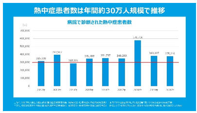 谷口先生:一般的に知られてはいませんが、毎年30万人以上が「熱中症」になっています。「熱中症」は医療機関で診断される病名なので、医療機関で診断されていない人は含まれません。暑さで体調が悪くても病院に行かなかったという人は多いでしょう。実は、医療現場では以前から、熱の影響で体調不良を起こしても病院には行かない「潜在的な体調不良者」がたくさんいると推測していました。その「潜在的な体調不良者」の規模が把握できていないことは、熱中症を取り巻く課題のひとつでした。