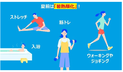 谷口先生:夏前に行ってほしい熱あたり対策は、「暑熱順化」です。ウォーキングや軽い運動、入浴などで汗をかける「体の中に熱をためない」体づくりが大切です。夏本番は、「暑熱回避」が重要です。室内ではエアコンを適切に使い、熱あたりしない環境づくりを徹底してください。屋外では各自治体などが設置している「クールシェアスポット」を暑熱回避する場所として是非活用してください。