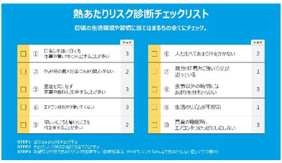 ダイキン・重政:「熱あたり」リスクは、日ごろの生活環境や習慣によって変わってきます。今回、ご自身やご家族が「熱あたり」しやすい暮らしをされているかどうか把握するための参考として、谷口先生に監修いただき、「熱あたり」リスクの確認に役立つチェックリストを作成しました。当社の「みんなで熱あたりしない夏」サイトで、是非、チェックしてみてください。